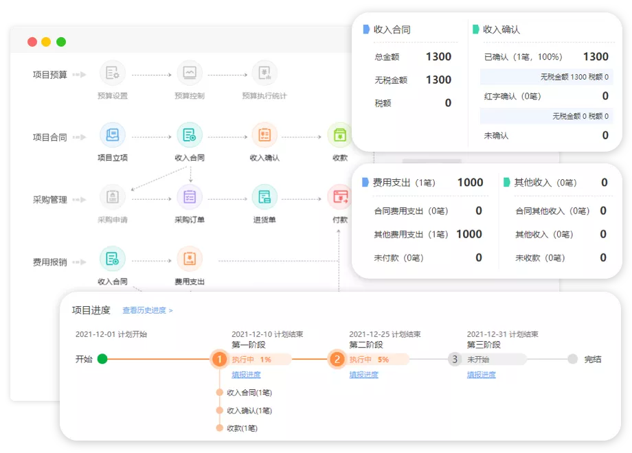 項目進度及結(jié)算回款一體化,項目人料機費核算一體化。